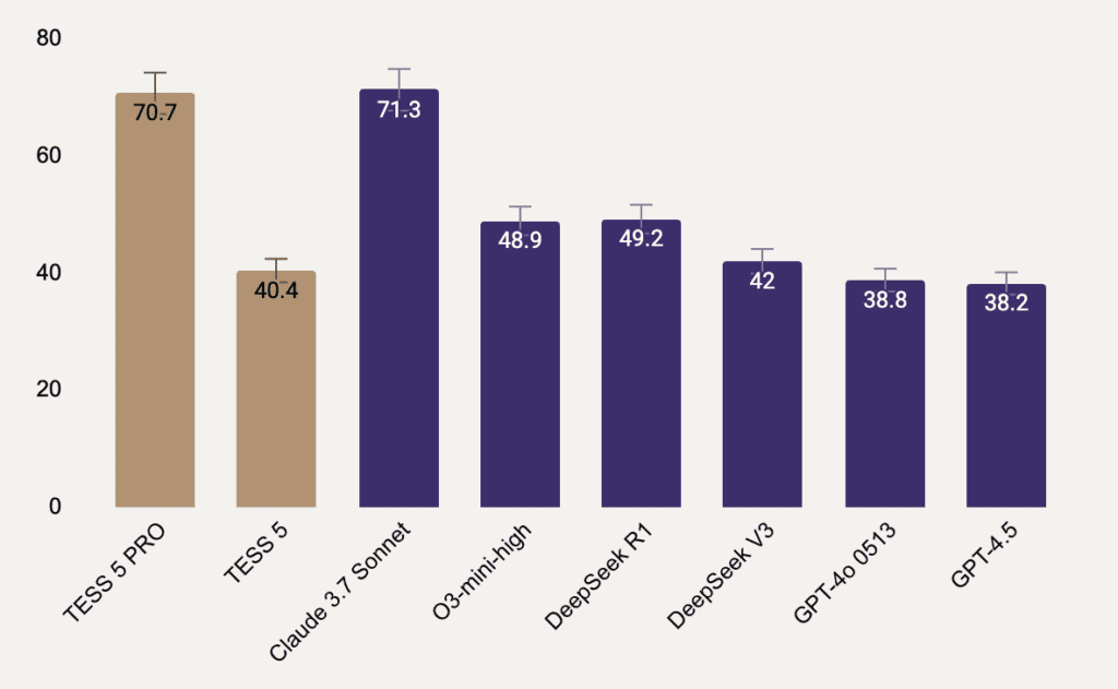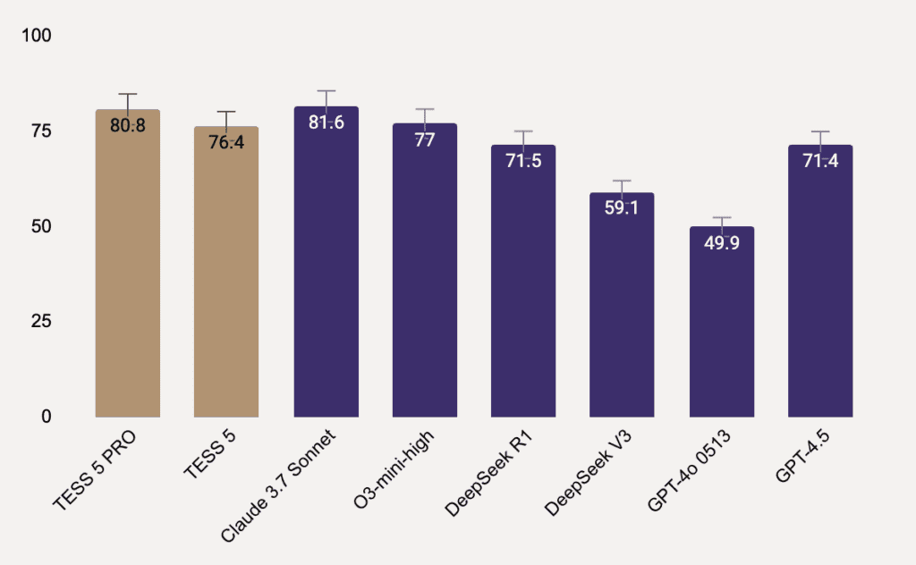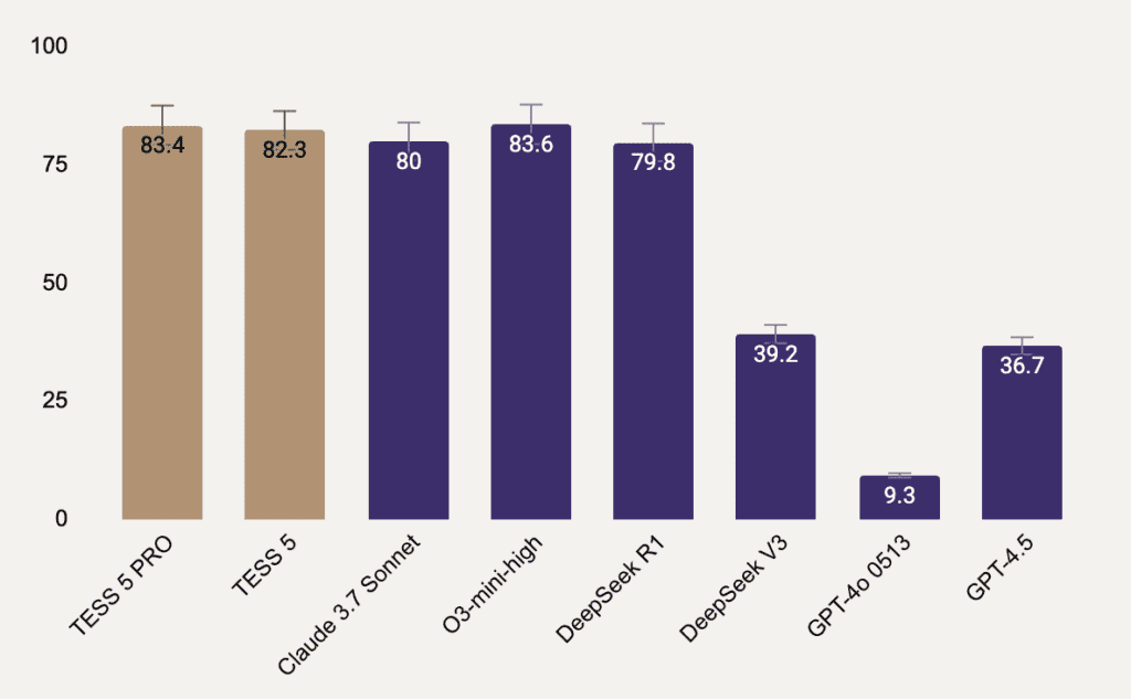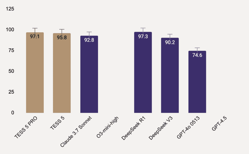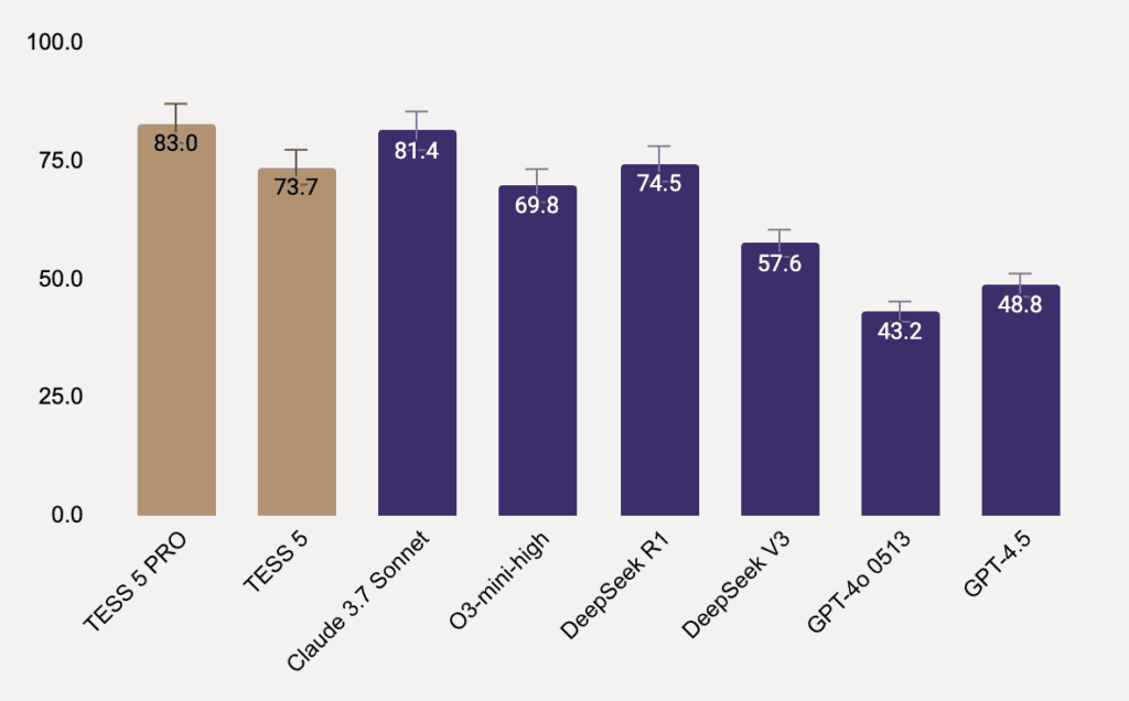 We’re excited to announce the launch of TESS 5 and TESS 5 PRO, the firsts Adaptive Reasoning Models in the World, crafted to meet the growing demands of the AI era. TESS 5 is optimized to provide an exceptional balance between speed and performance, dynamically adapting to a wide range of queries.